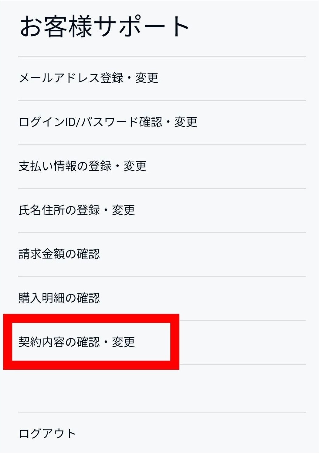 3:「契約・決済情報」から[契約内容の確認・解約]を選択