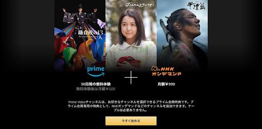 しかし、Amazon Prime Video自体の無料トライアルはあるものの、U-NEXTのようなNHKオンデマンド専用チャンネルの無料サービスはありません。