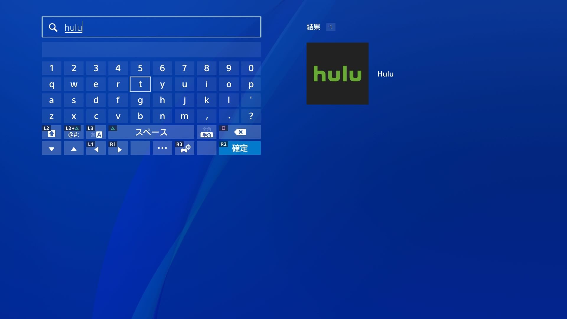 検索欄に「Hulu」と入力すると、右側に検索結果が表示されます。