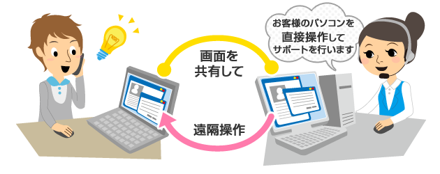 パソコンのトラブルなどがあった場合、DTIのオペレーターがお客様のパソコンを遠隔操作してサポートを行います。