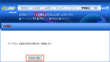 「設定値の初期化」クリックすると、本商品の設定が初期化され、再起動します。
