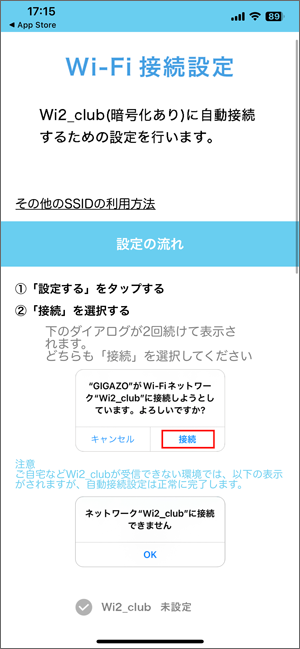 ※「設定する」ボタンをタップした後、ご利用環境によって以下のいずれかの画面が表示されます。 - ▼