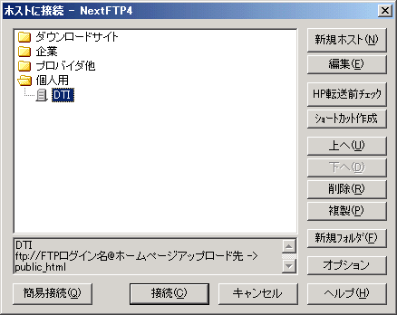 DTI用の設定を選択して「接続」をクリックしてください。 |