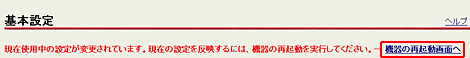 6. 再起動を促す表示がされますので、「機器の再起動画面へ」をクリックします。 |